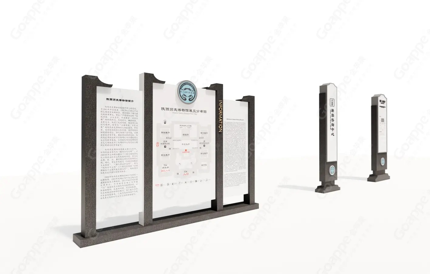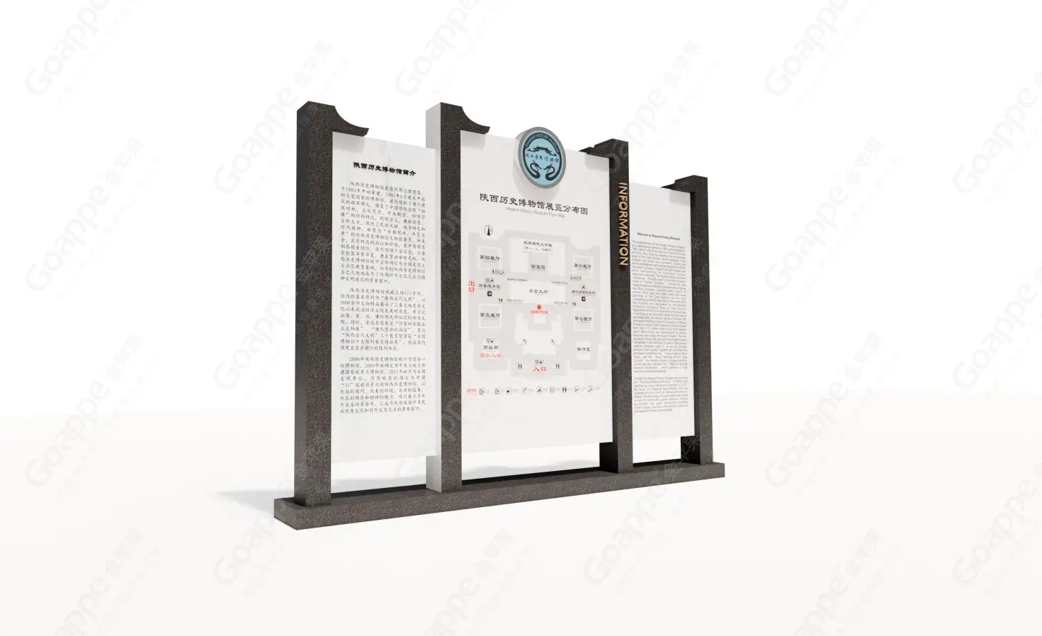金苹果在此期间有幸为陕博提供标识系统规划、设计及施工服务