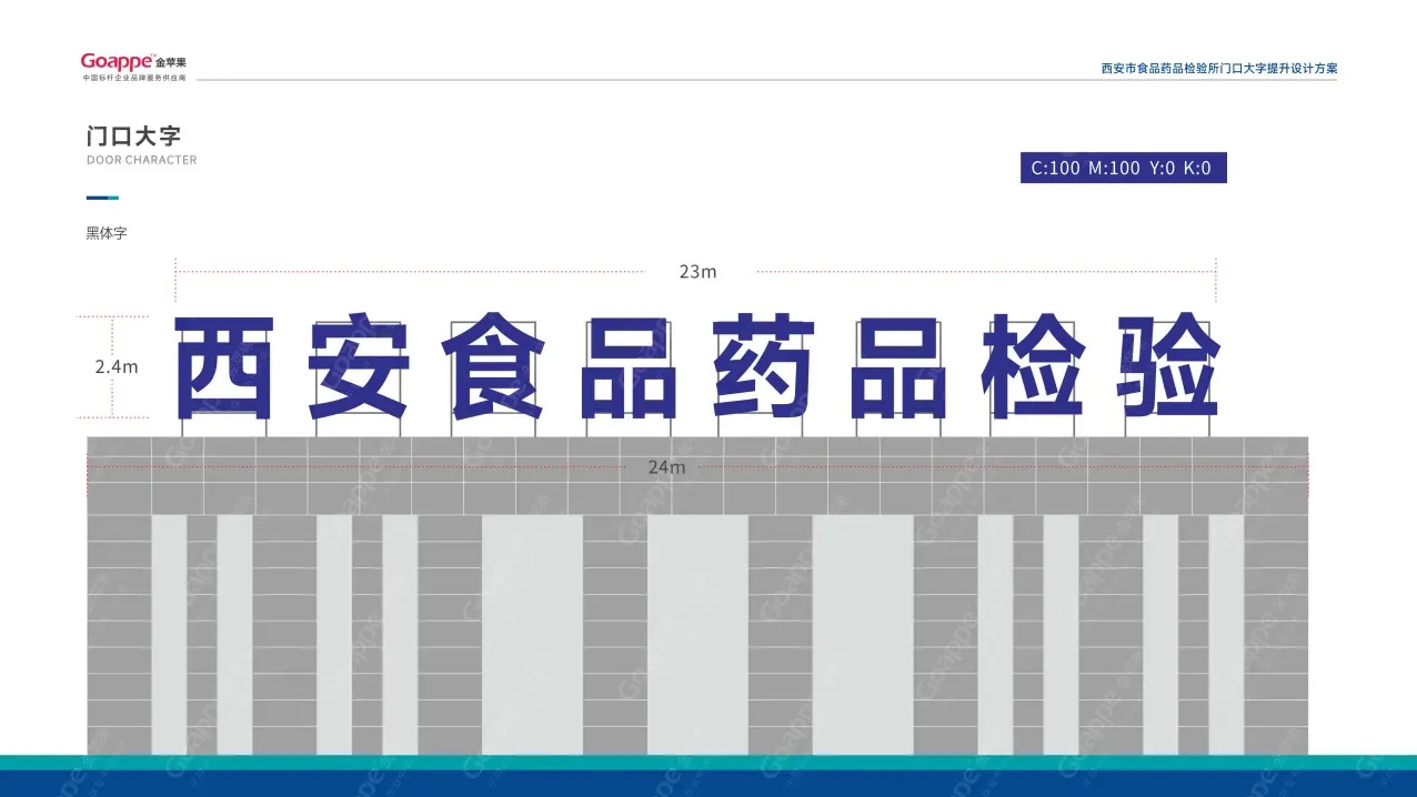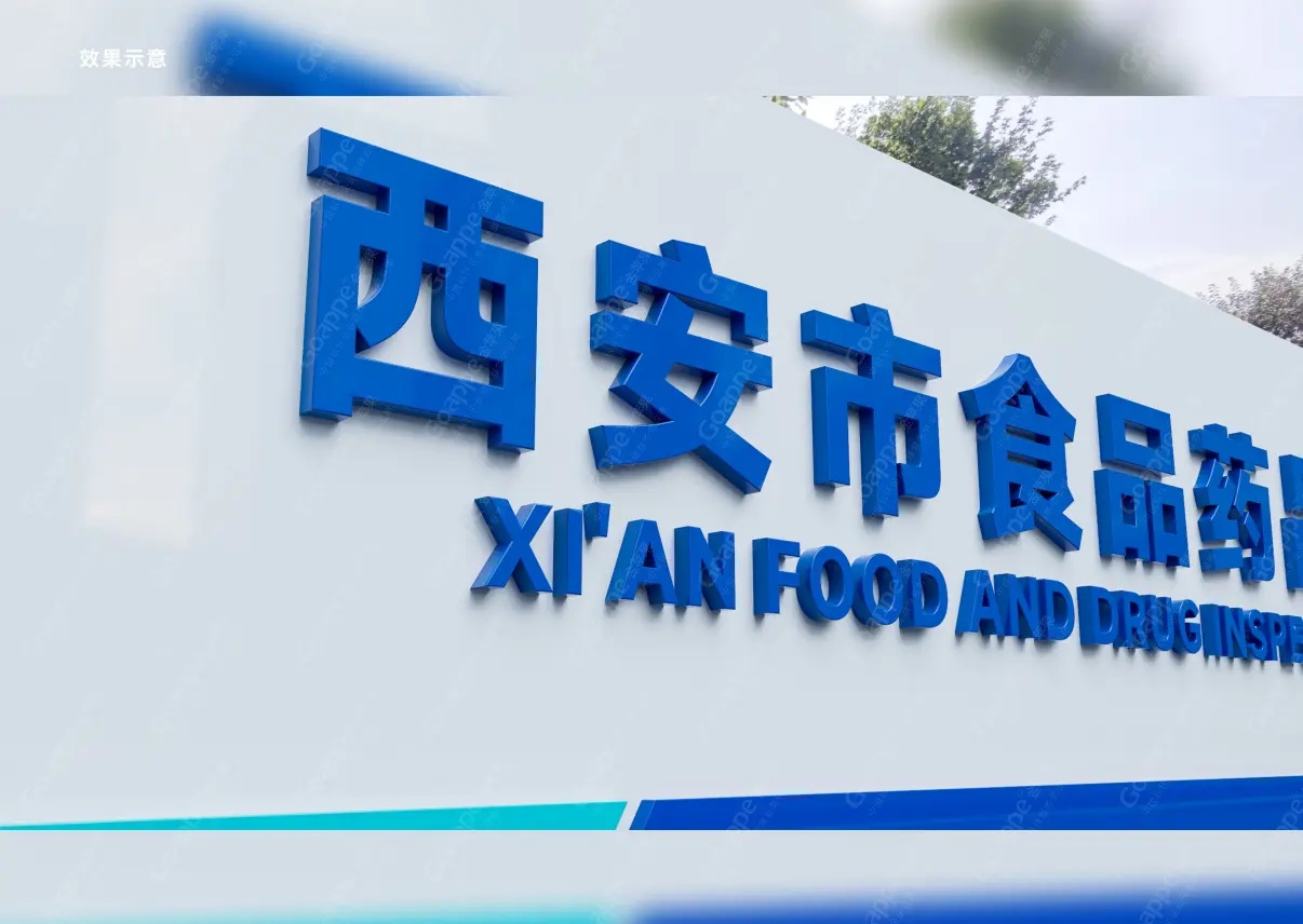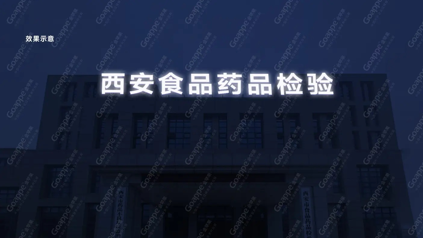 本着服务于政府部门的原则,金苹果广告在《西安市食品药品检验所门头及楼顶发光字项目》设计之初,即摒弃一些繁琐的设计风格及元素,以“庄重、肃立、大气、直观”为核心的设计标准。