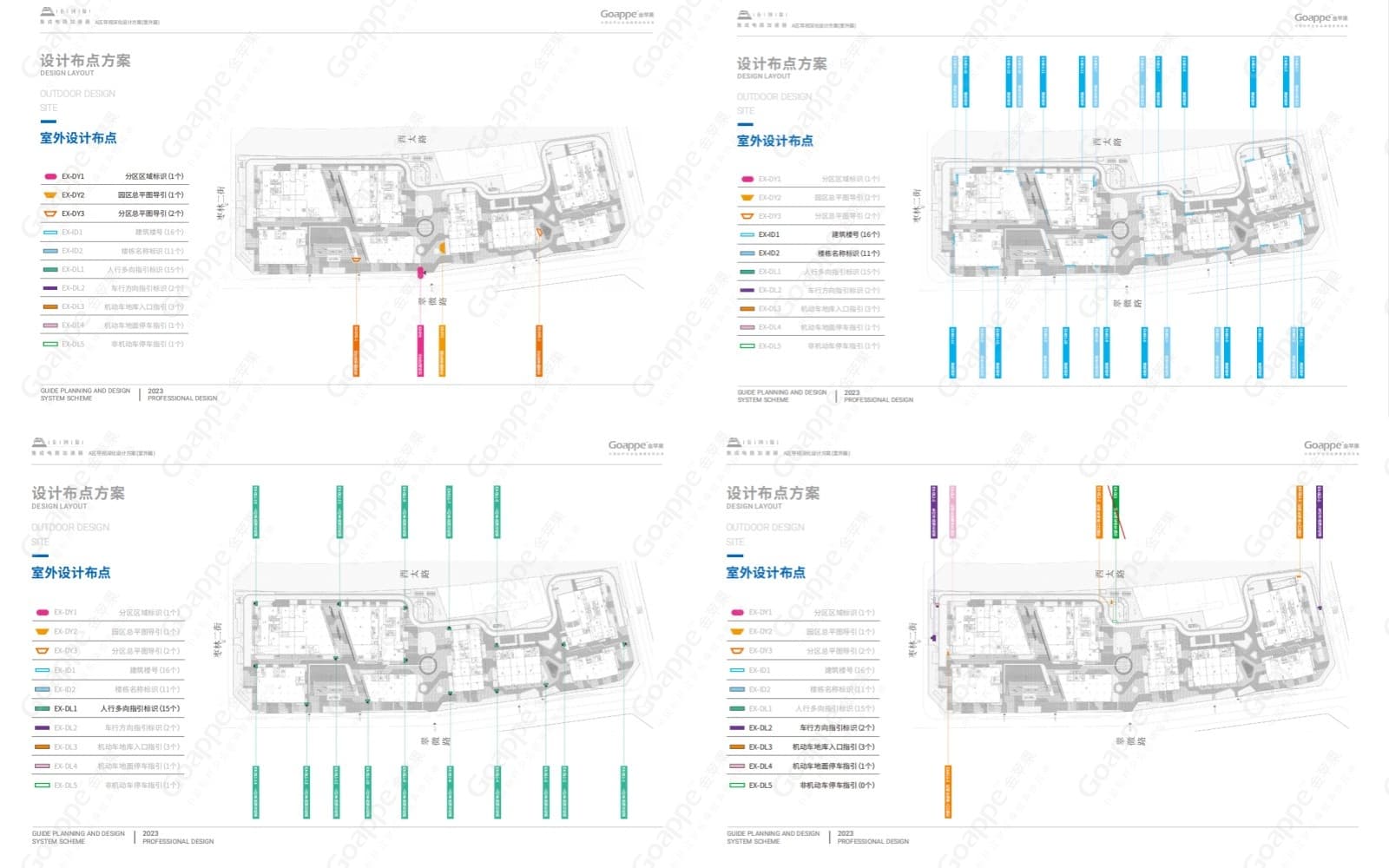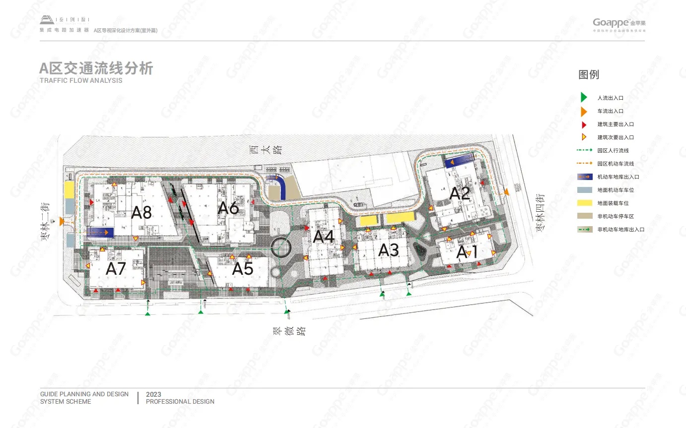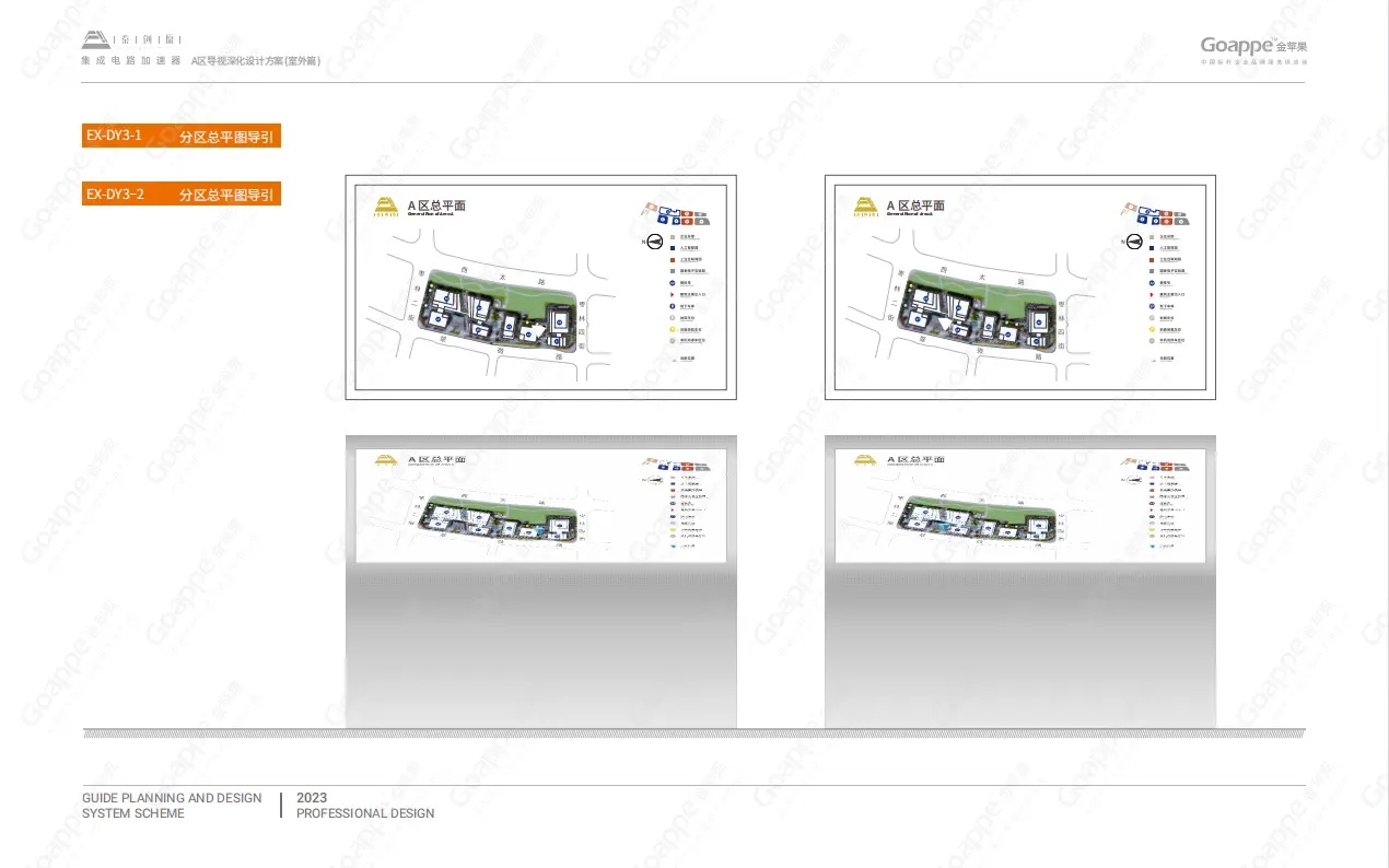 基于前期多次实地考察,Goappe团队对园区的主要出入口、通道、交叉口及较为复杂的功能环境有了清晰的认知,由此对整体的标识点位、交通动线等有了更为准确的规划,从而保证了受众在识别过程中的可行性。