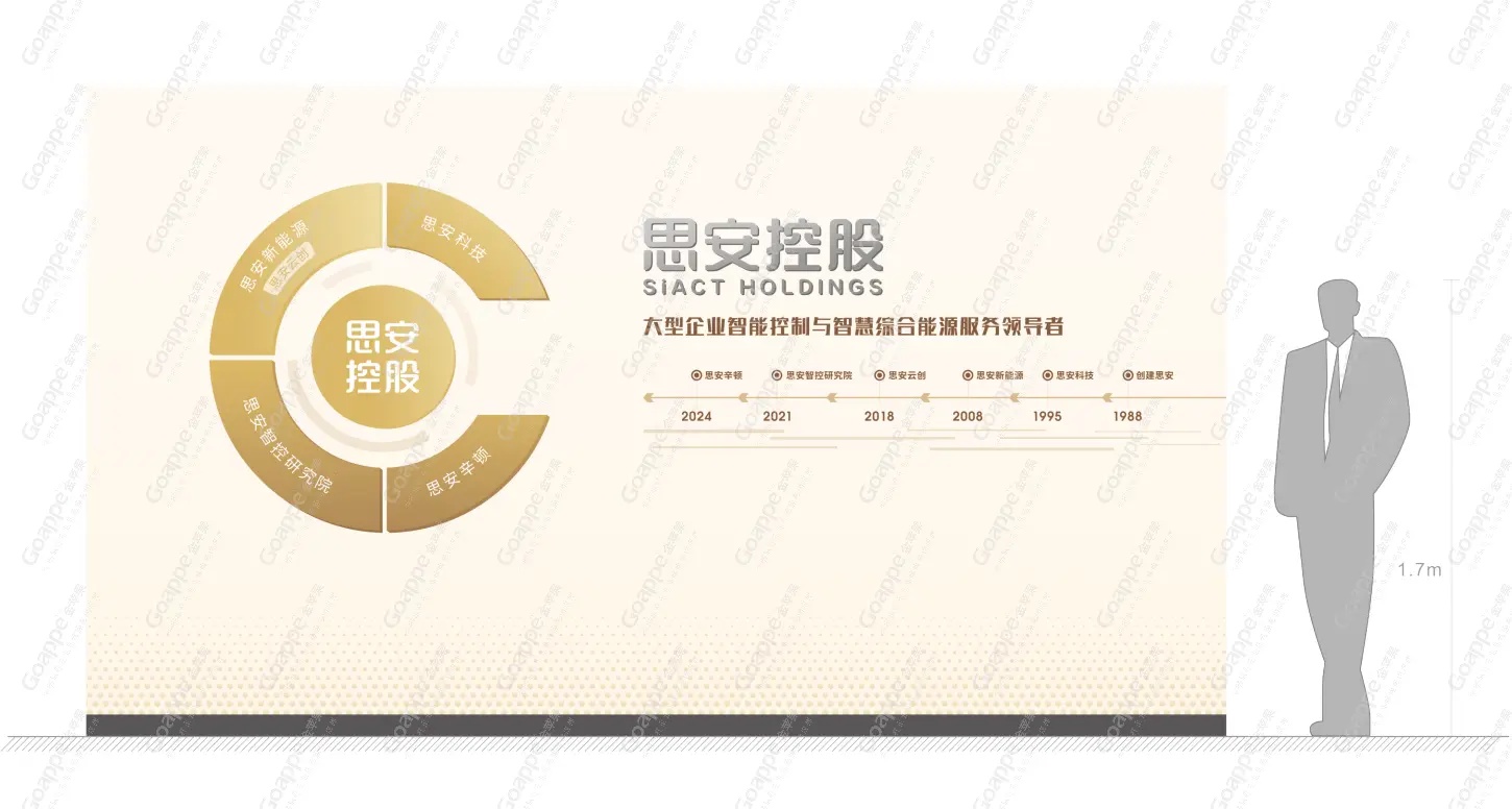 何为定制设计?尺寸、内容、风格等全方位匹配化设计,高度的契合空间环境与企业文化,即为定制。经过多轮内容及设计细节的商榷后,项目团队与客户方终达成一致,确定了以企业VI色“金色”为文化墙主色调,通过简约、连贯的视觉表现方式,清晰的传递企业组织架构、文化建树、成长脉络及发展成果等内容,充分展示企业发展实力,同时为现有环境空间增色!