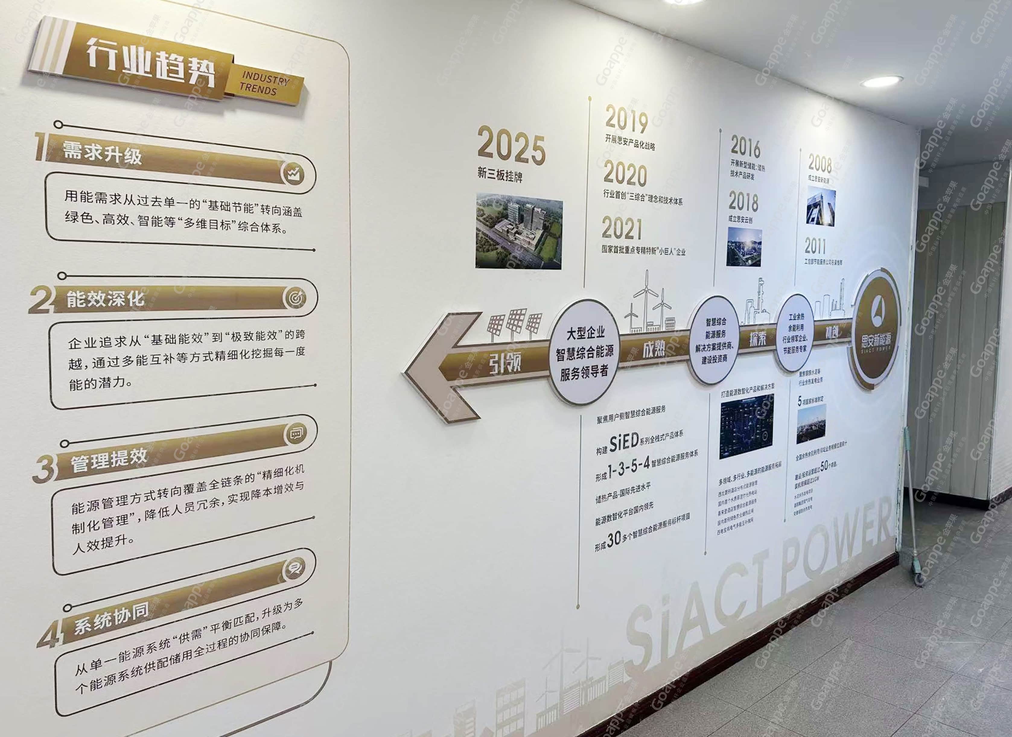 本项目主要负责承担大型的智慧能源企业,进行内部文化墙改造工程,以达到更加美观、多元、清晰的展示效果。
