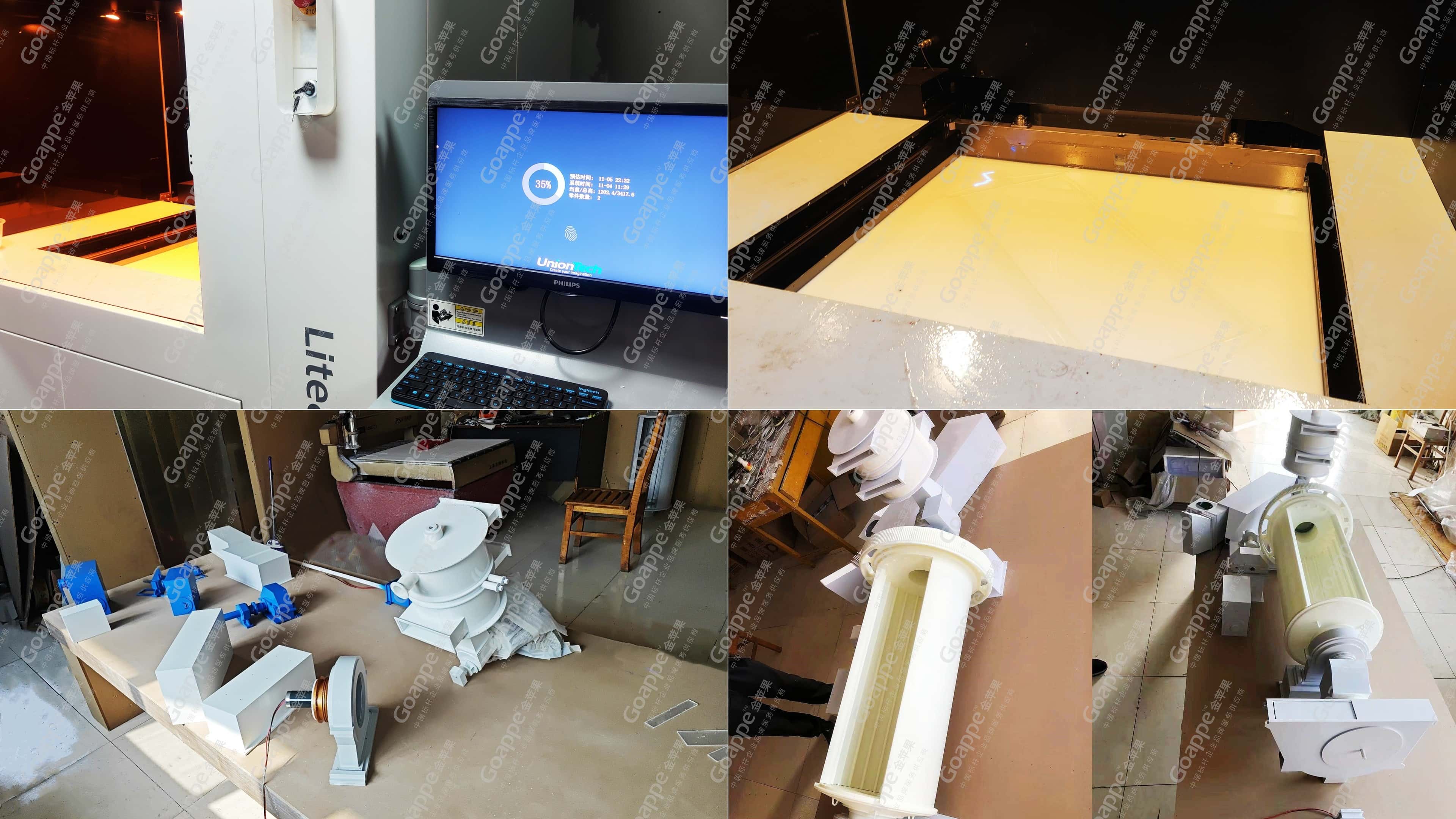 制作模型,前提必然需要对模型的构造及原理十分清楚,基于此共识,金苹果团队多次与客户方设计人员当面进行沟通,探讨模型原理及制备完善措施,沟通工作到位后,团队随即进行效果图渲染及色彩调配,最终共出炉三款设计方案,其中以“蓝、白、金”为主体色调的设计方案获得客户青睐,在于制作团队沟通确认最终色彩的可实现度无误后,制备阶段工作也顺利结束。