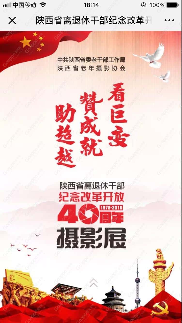 9月26日上午,由省委老干部局、省老年摄影协会主办,大唐西市集团、大唐西市博物馆、陕西老年报、省政协各界导报协办的“看巨变 赞成就 助超越 陕西省离退休干部纪念改革开放40周年摄影展”顺利举办。当天,省级老领导崔林涛、潘连生、张生潮,省委老干部局副局长王林平,大唐西市集团执行总裁、丝绸之路国际总商会秘书长李中航,大唐西市集团副总裁、大唐西市博物馆王彬馆长,陕西摄影界知名人士均出席本次活动。
