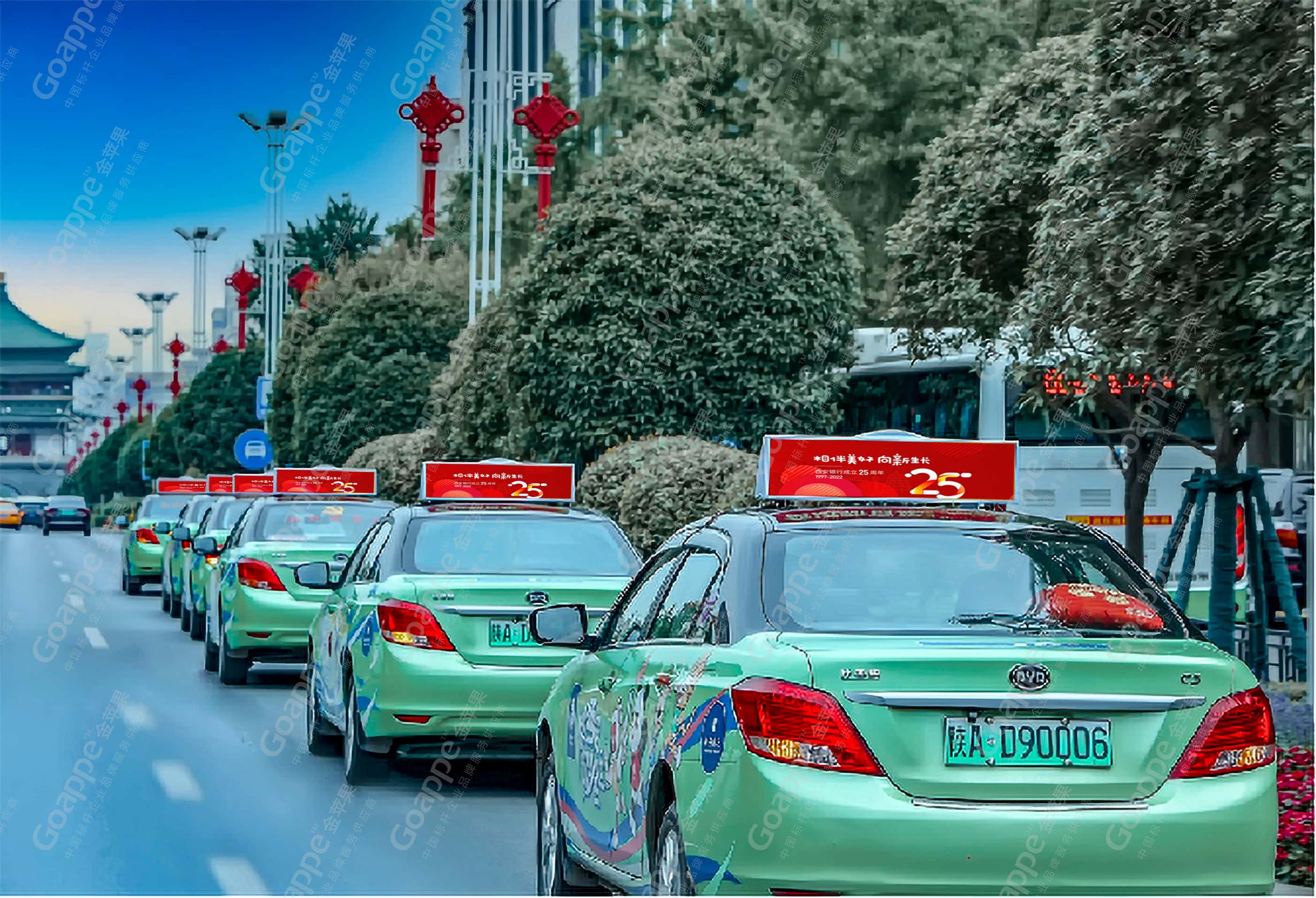 基于此需求,金苹果团队多次与西安银行相关负责领导展开接洽会谈,商讨并决出品牌媒体传播策略方案。其中涵盖最具互动与更新优势的“城市LED大牌”、最具流动性与覆盖性的“出租车彩屏”、最具流量跨度的“主干道灯杆旗”等媒体形式,以此实现此次品牌形象传播的广泛覆盖,以足够的受众流量支撑,达成客户的核心诉求要求!