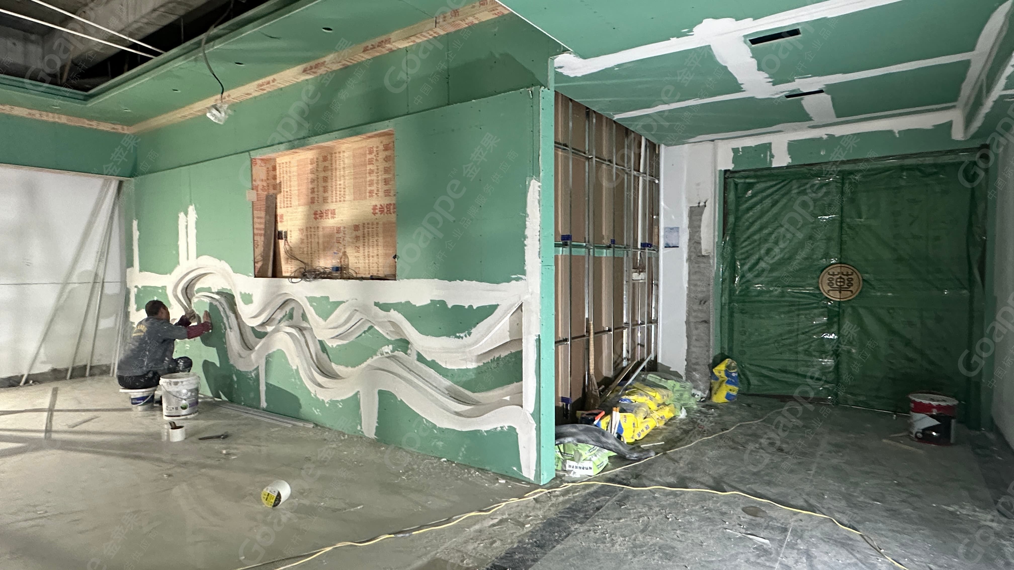 从墙体造型搭建、底层防水、墙体面层保护、墙体防水等,团队均采用标准化工艺流程,并结合后期展馆各项使用需求及参数,精准预留管线与接口,确保装饰效果与功能实现同步达标,同时严格把控施工精度与节点节奏,实现展馆建设质量与效率的双重保障。