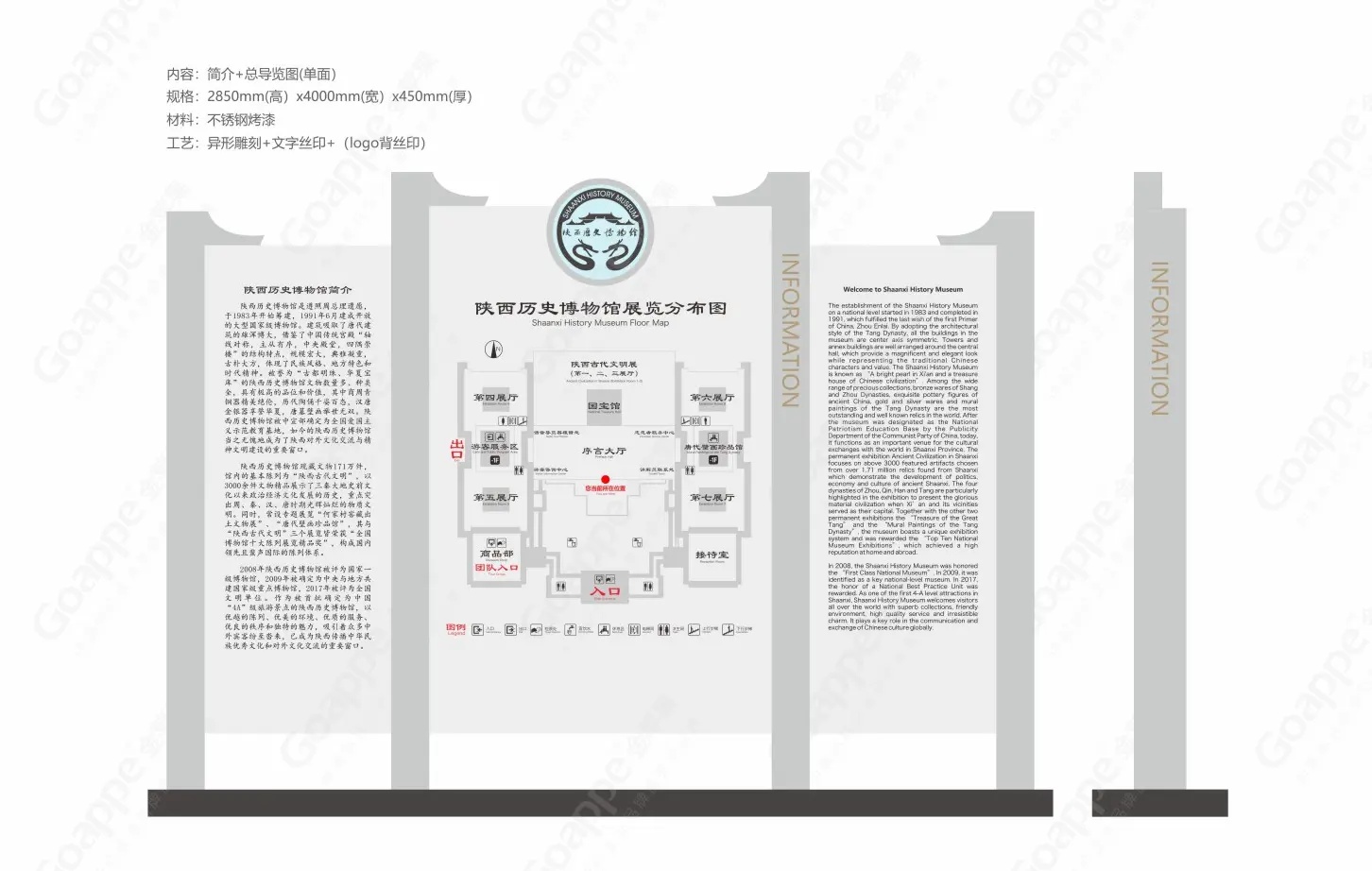 金苹果在此期间有幸为陕博提供标识系统规划、设计及施工服务