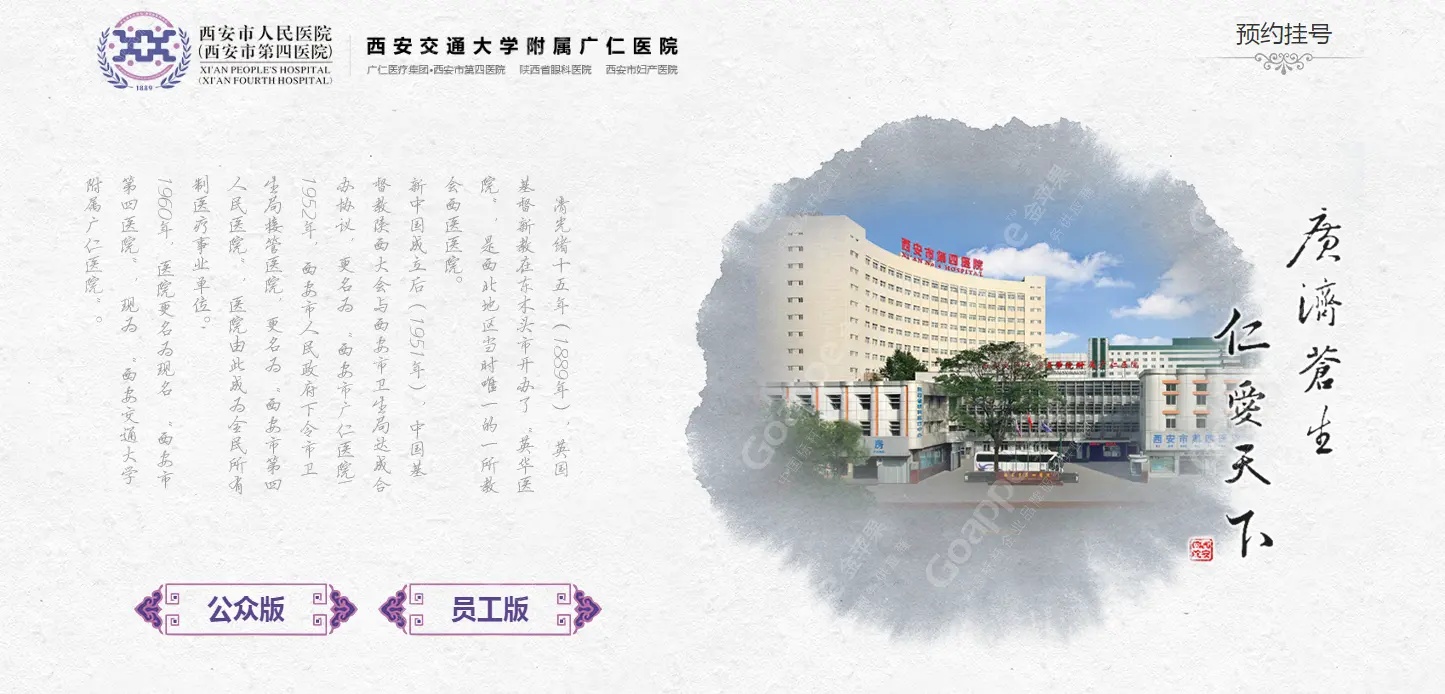 项目背景: 西安市第四医院位于陕西省西安市解放路21号,始建于1898年,是一所集医疗、教学、科研、急救、预防、康复、保健为一体的综合性三级甲等医院,是全国优质护理服务示范工程先进单位、全国医院管理年活动先进单位,也是西安市医保定点医院。 服务内容: 医院环境导示标识系统设计及制作施工