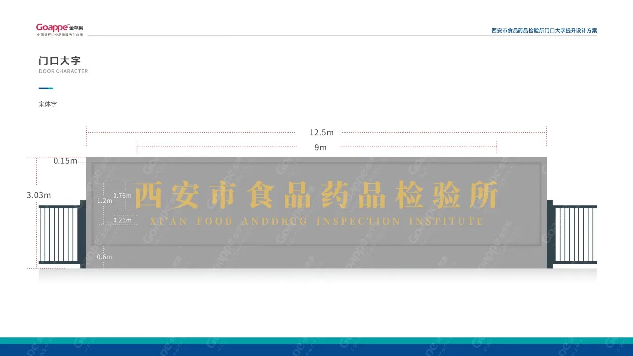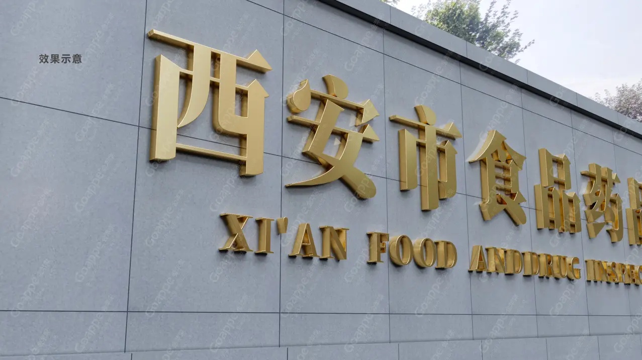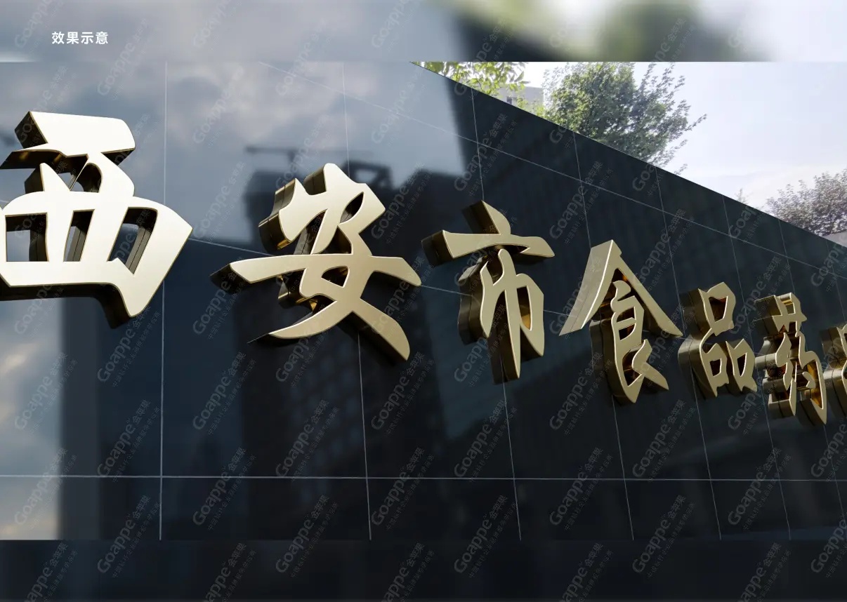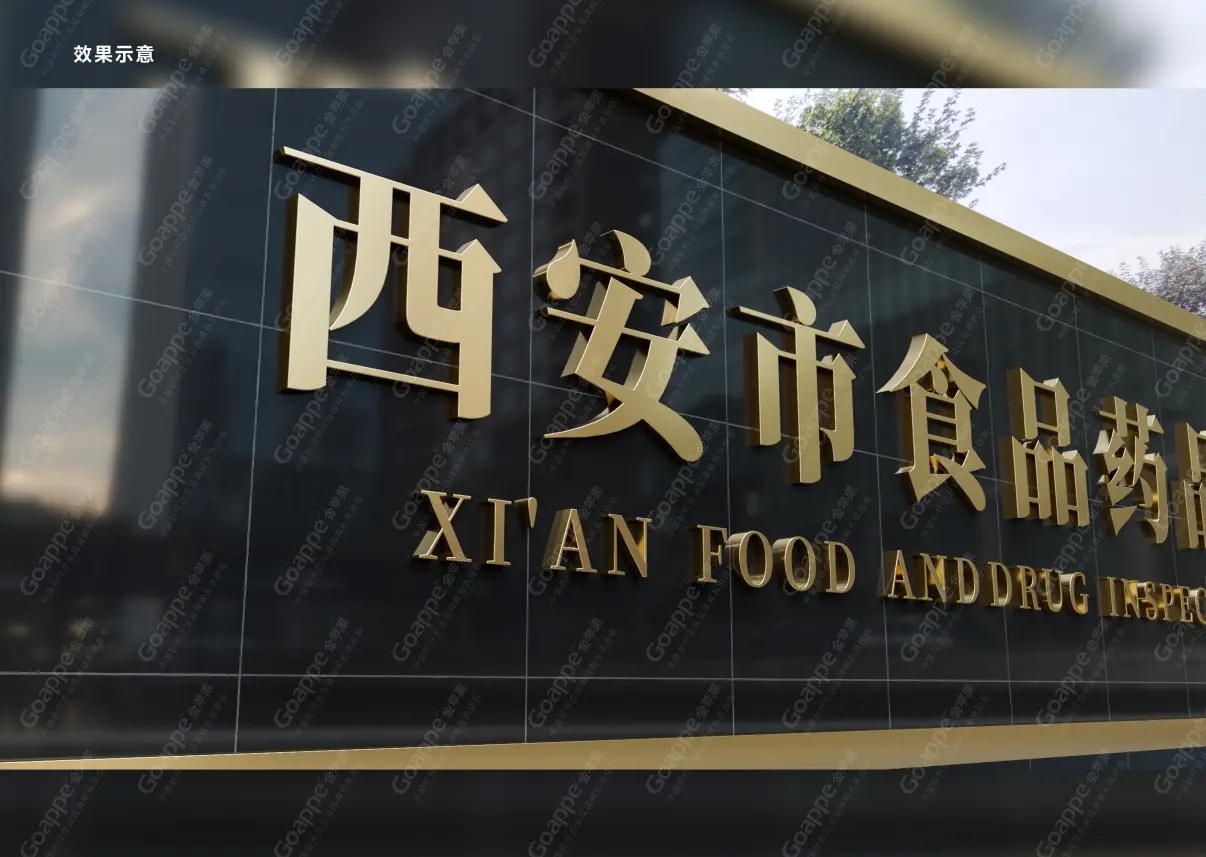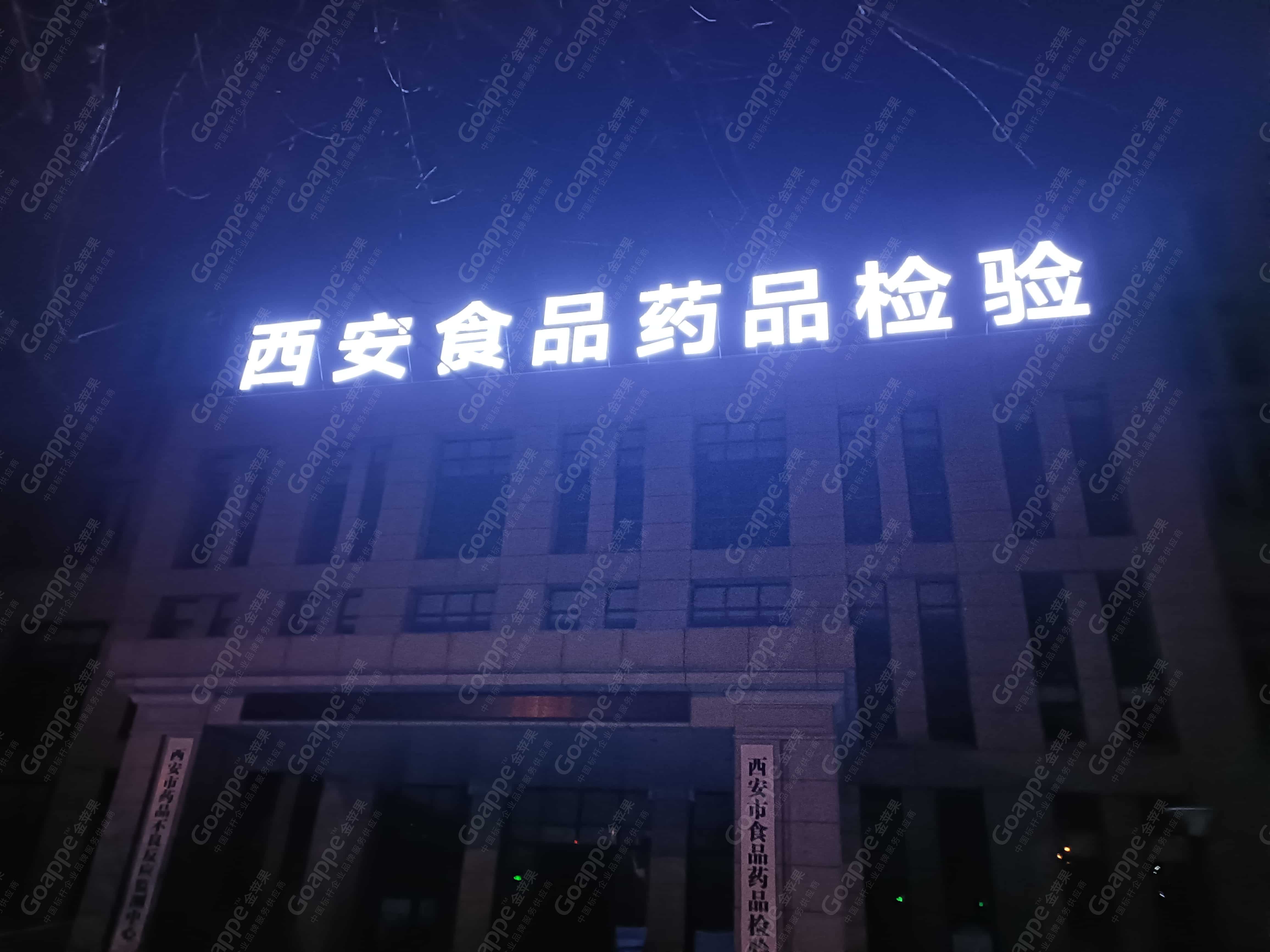 本着服务于政府部门的原则,金苹果广告在《西安市食品药品检验所门头及楼顶发光字项目》设计之初,即摒弃一些繁琐的设计风格及元素,以“庄重、肃立、大气、直观”为核心的设计标准。