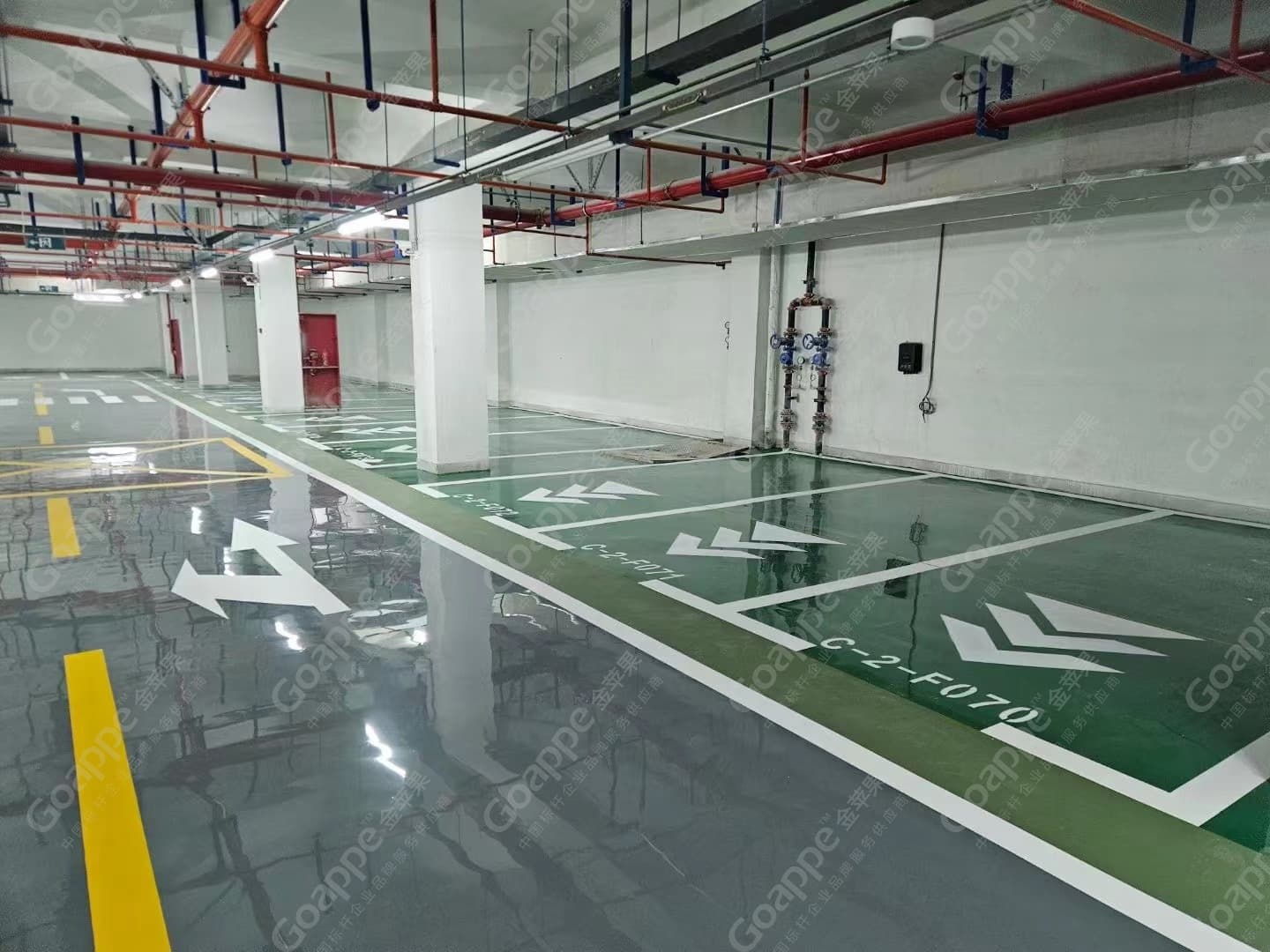 车库,作为现代化城市发展的必要基础设施,其不仅是车辆的停放场所,更是展现秩序与规范的重要空间。如今日益更进的地库划线标准及技术,也为车辆专属的空间增添了一份规范之美。西安电子谷核心区,作为崭新的电子产业园区,其地下车库在庞大的空间面积及复杂的交通线路等,均对划线工程提出了考验。项目组则需通过专业认知与经验,通过鲜明的色彩及精准的线条,清晰地划分出停车位、行车道、人行道等不同区域,从而为后续进出园区的车主提供规范、有序的指导。