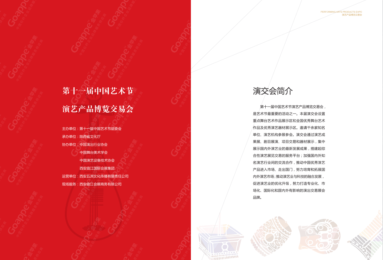 下面将着重呈现第十一届中国艺术节演艺产品博览交易会的整体规划及设计,演交会于2016年10月在曲江国际会展中心盛大开幕,来自全国各省市文旅局及文艺行业企业参展。