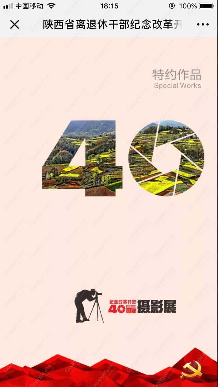 本方案以党政元素烘托氛围,色彩鲜红,视觉强烈,引人注目。字体设计中以镜头光圈突出活动主题,让人准确联想到摄影展。整体风格和谐统一,给人大气稳重感。