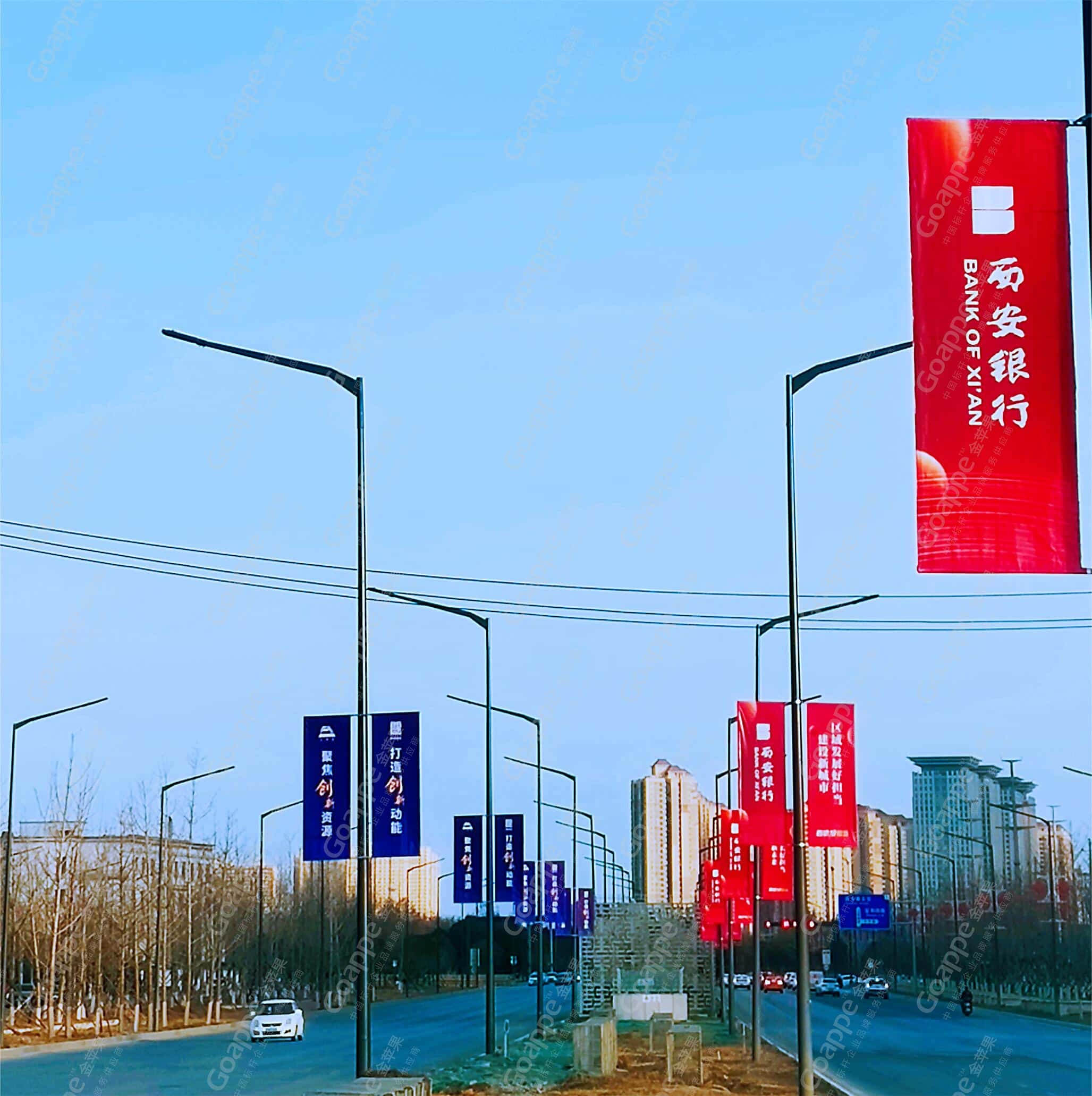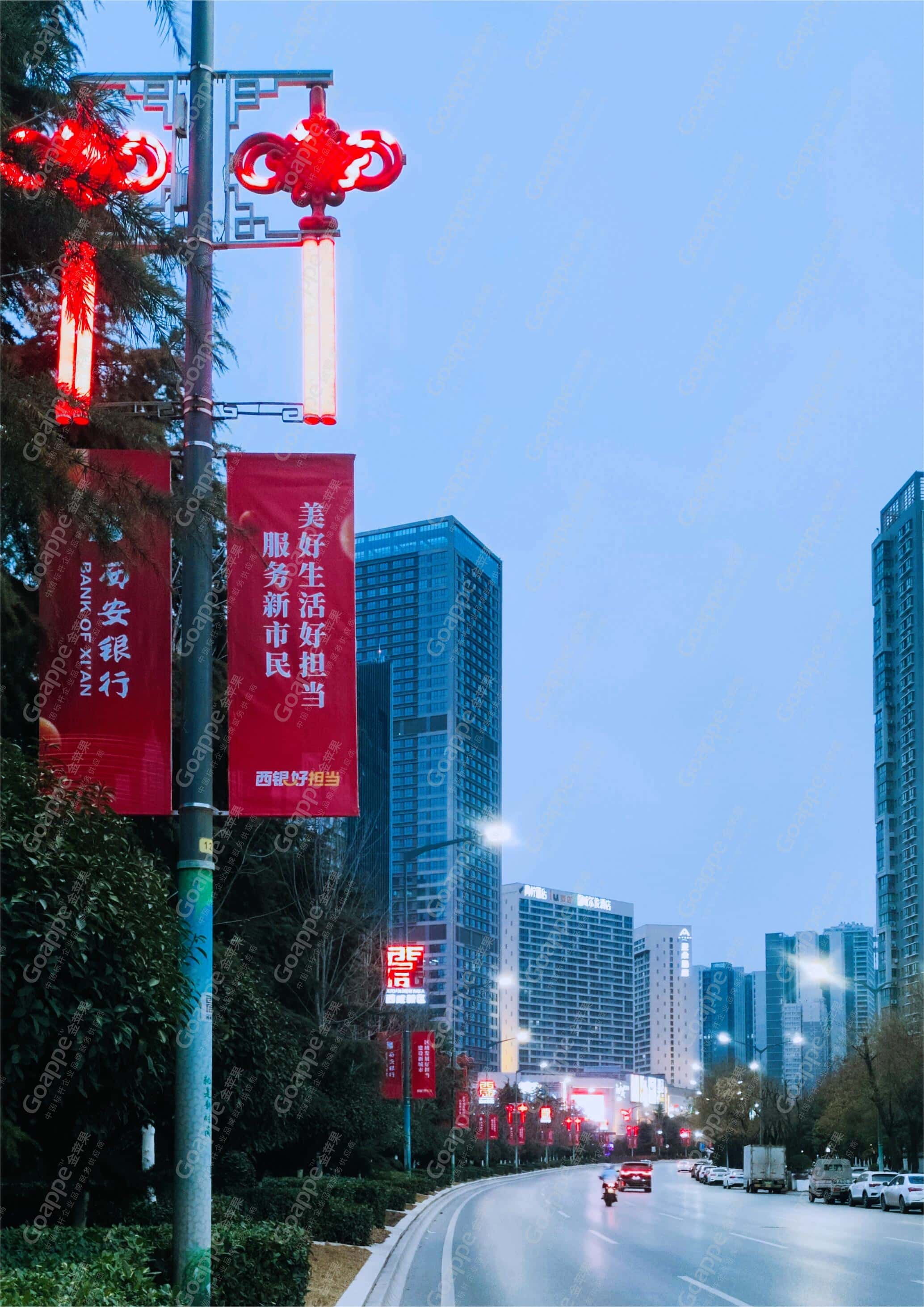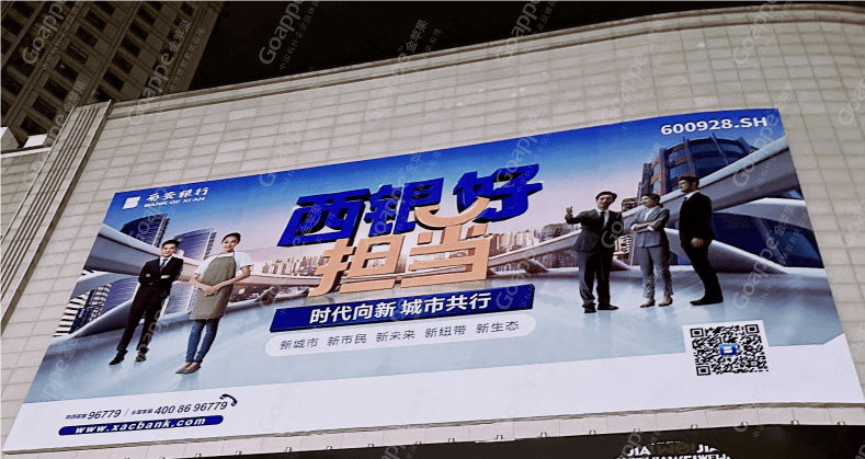 基于此需求,金苹果团队多次与西安银行相关负责领导展开接洽会谈,商讨并决出品牌媒体传播策略方案。其中涵盖最具互动与更新优势的“城市LED大牌”、最具流动性与覆盖性的“出租车彩屏”、最具流量跨度的“主干道灯杆旗”等媒体形式,以此实现此次品牌形象传播的广泛覆盖,以足够的受众流量支撑,达成客户的核心诉求要求!
