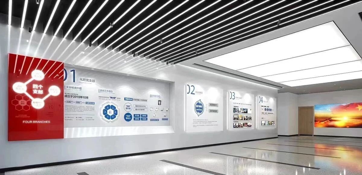 空间布局和设计:考虑文化墙所在的空间布局和设计。确定墙面的位置和尺寸,确保它在公司调性一致性。